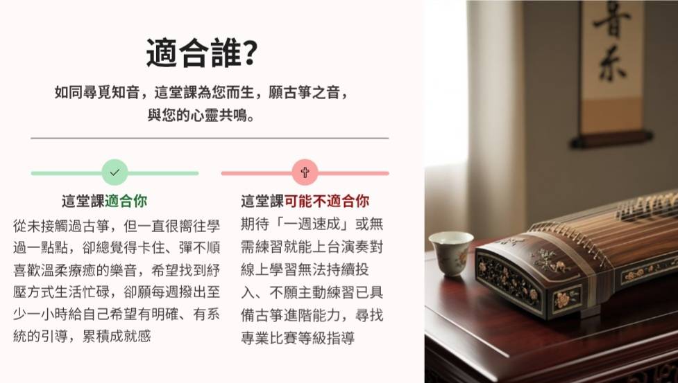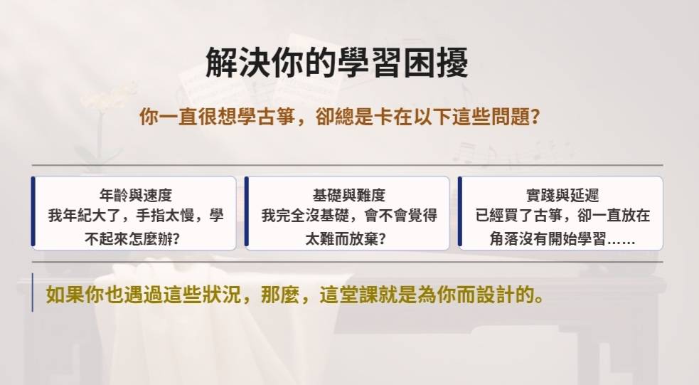 不論是簡單樂器、電腦軟體,還是單純想練歌——這堂課都能讓你從「想開始」到「能完成」。